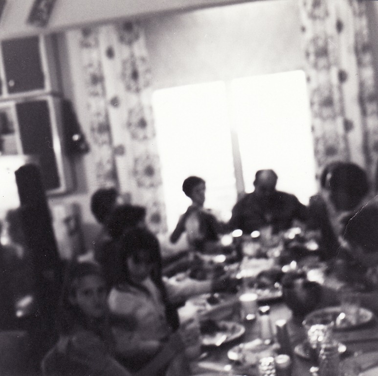 I can only find one later photo of my dad, an accidental photo, taken in 1969. He’s profiled by the light, shining on his bald head.