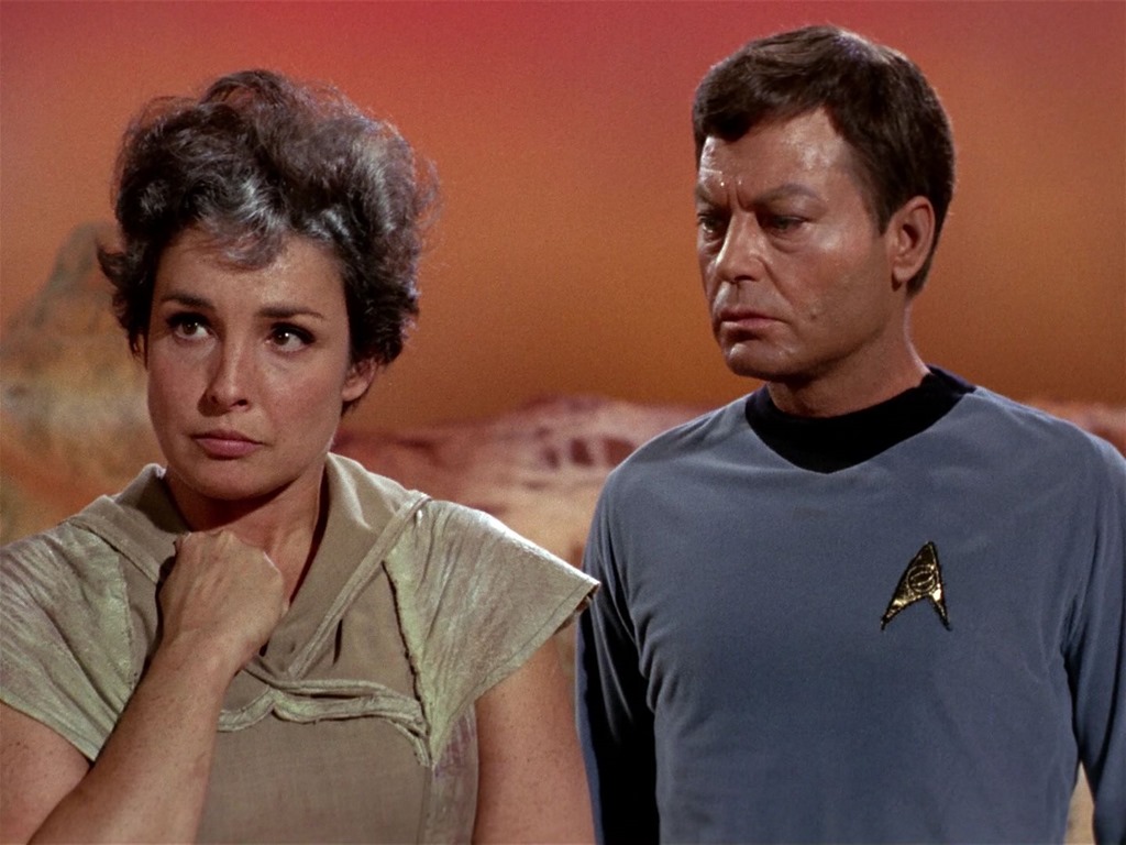 I wouldn’t learn until much later the limitations of production budgets on plots. Star Trek had to paint in extremely limited impressionistic strokes. We never see many of the Enterprise’s 400+ crew. For this first story, having the captain and doctor go down to see an old friend seemed like a logical away crew. We wouldn’t learn until later that Kirk gets most of the air time, although having the captain always lead the missions planet-side is sort of like having a general take point when a squad goes penetrating enemy lines.