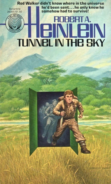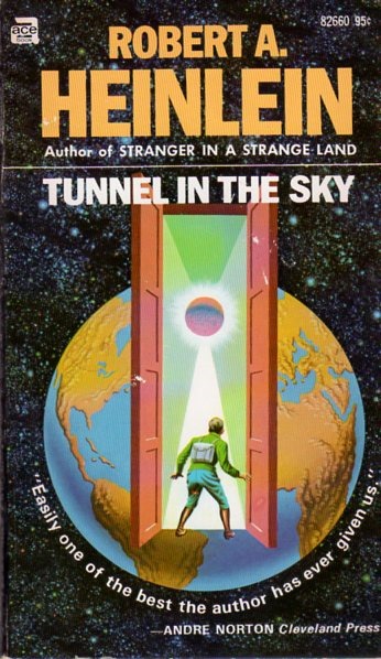 For fun, I thought I’d give a brief history of these two covers. Tunnel in the Sky has never had any great covers, but some of them were not bad. The Door into Summer has one great SF cover, and a couple interesting ones. Clicking on the covers should bring up larger images.