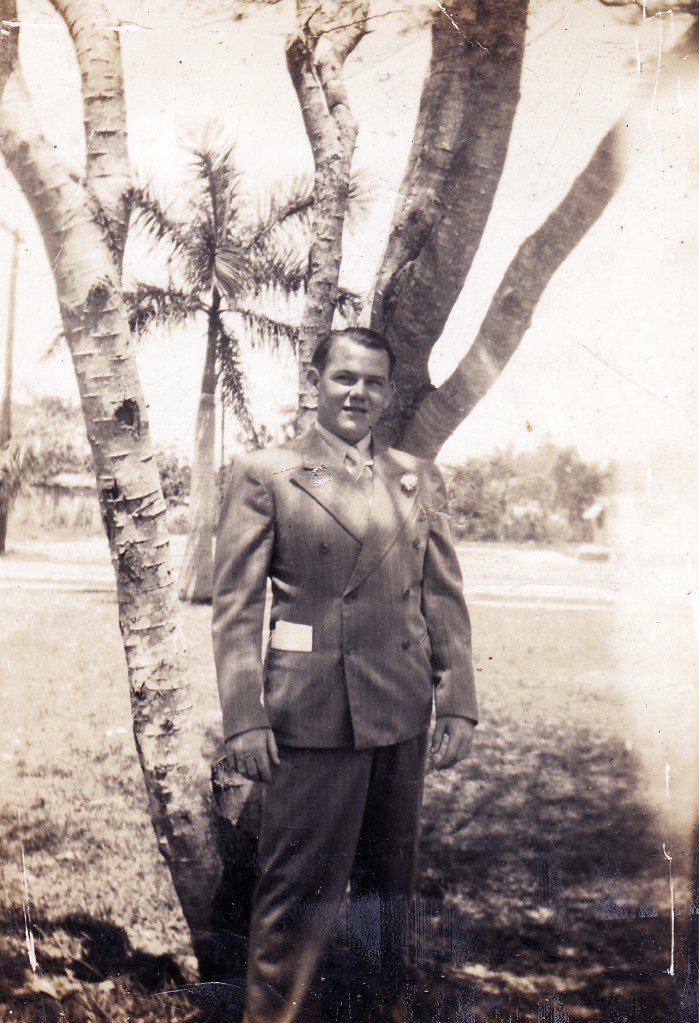 Going through what few things he left after dying I found a couple newspaper clippings, letters, and photos. I still have them. There’s just not much evidence. I really wanted to know what he dreamed about becoming when he grew up. Of course, his teen years were the depression, so it was probably a job. One newspaper clipping told about how he and some classmates interned at the Miami Herald and learned about composing ads. In high school he delivered telegrams for Western Union on a bicycle, but I only know that because of a photograph. I wish I had Henry Louis Gates to help me decipher my past.