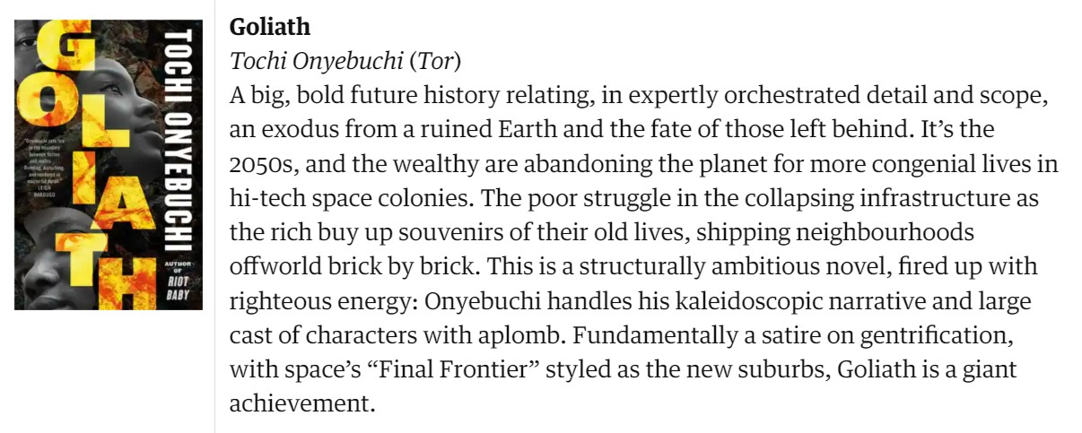 I’ve been watching a lot of YouTube videos about organizing personal information using note-taking apps, computer programs like Notion or Obsidian, writing in fancy notebooks using pens, etc. Tonight I even started writing a Python program to track the books I want to read. Then I said, “fuck it, this is too much trouble.” I decided to come up with the easiest method I could think of to get the job done. Whenever I read a book review in the many best-books-of-2022 articles I find on the web this month, I’m just going to take a screenshot and put it here.