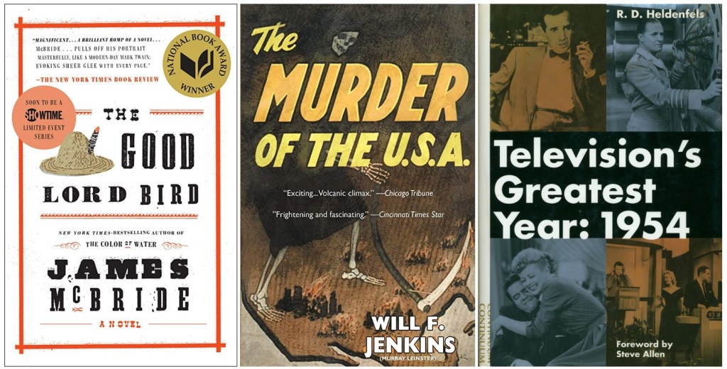 I’m reading The Murder of the U.S.A. because I’m writing about the history of science fiction stories that deal with surviving a nuclear war, and it’s an early example of the subject. I’m reading Television’s Greatest Year: 1954 because I found it in a used bookstore and it looked interesting and is interesting. I’m reading Dangerous Visions and New Worlds because I like reading and writing about the history of science fiction. I’m reading How Hight We Go In The Dark because I try to keep up with current science fiction and it was considered one of the best SF novels last year.