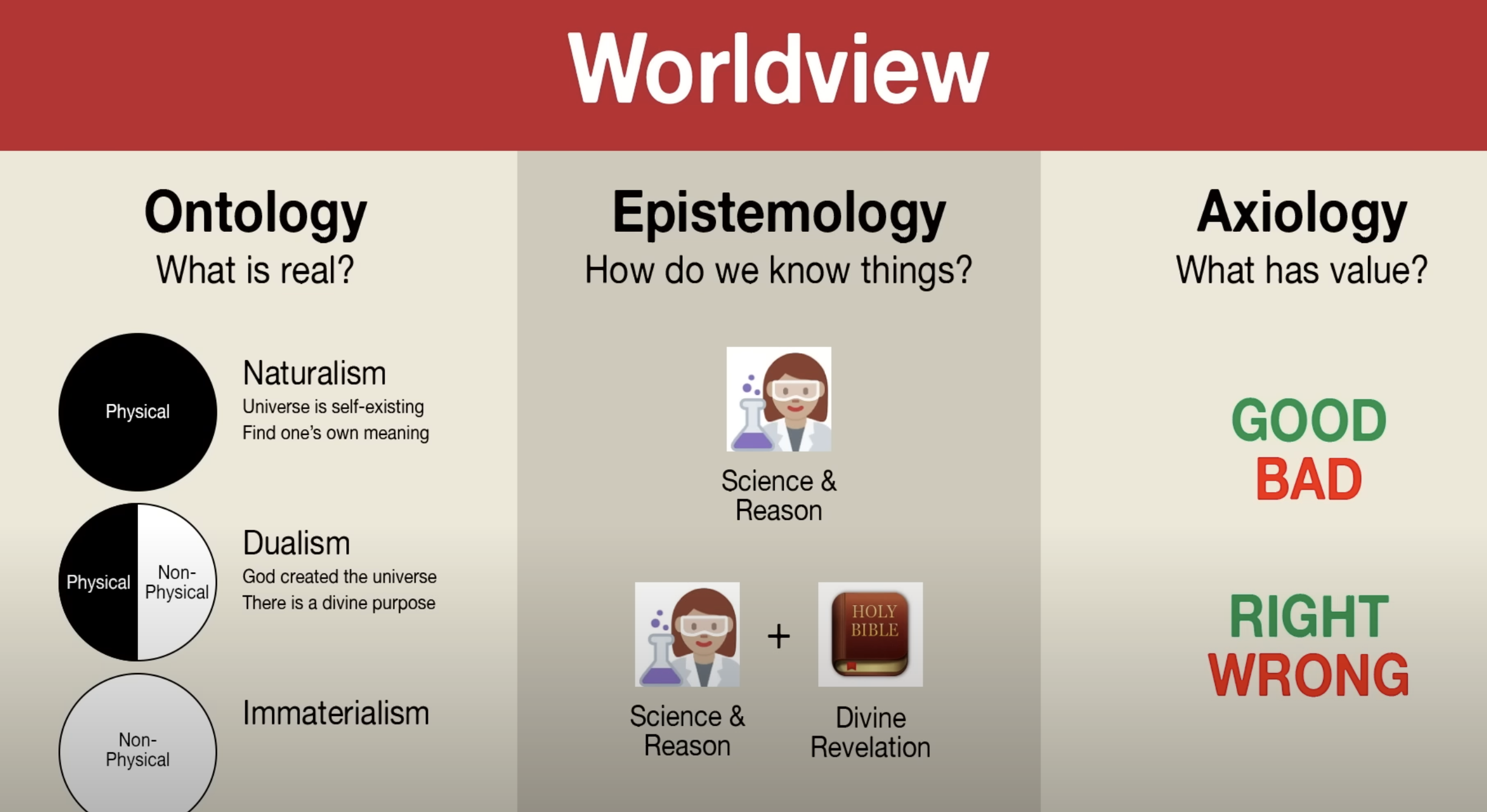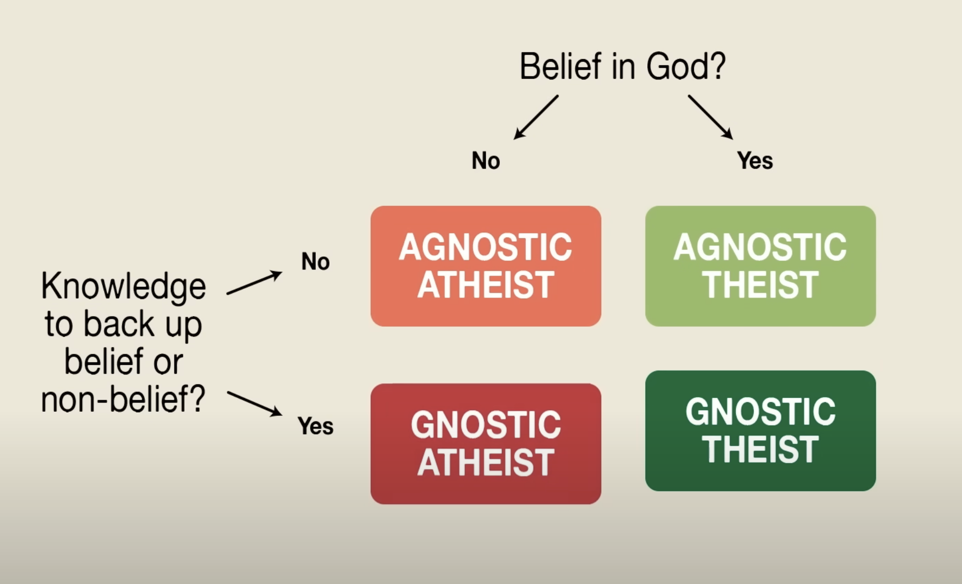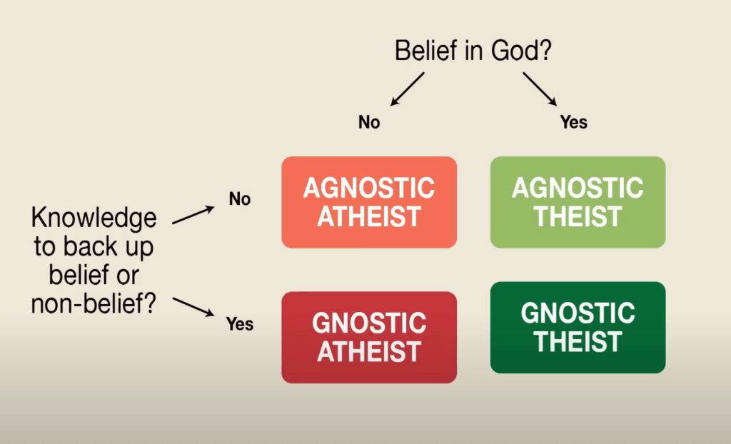 The worldview image above is a mini lesson in philosophy, but the whole video is a mini lesson in how to classify your feelings about religion and philosophy.