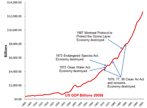 Right-wing conservative global warming deniers all cry in Chicken Little unison that doing the right thing about climate change will destroy our economy.  Well, Ramez Naam points out  in his essay “Reducing Carbon Emissions Will Be Cheaper Than Expected – It Always Is” that in the past after everyone ran around crying the economy would collapse, it didn’t.